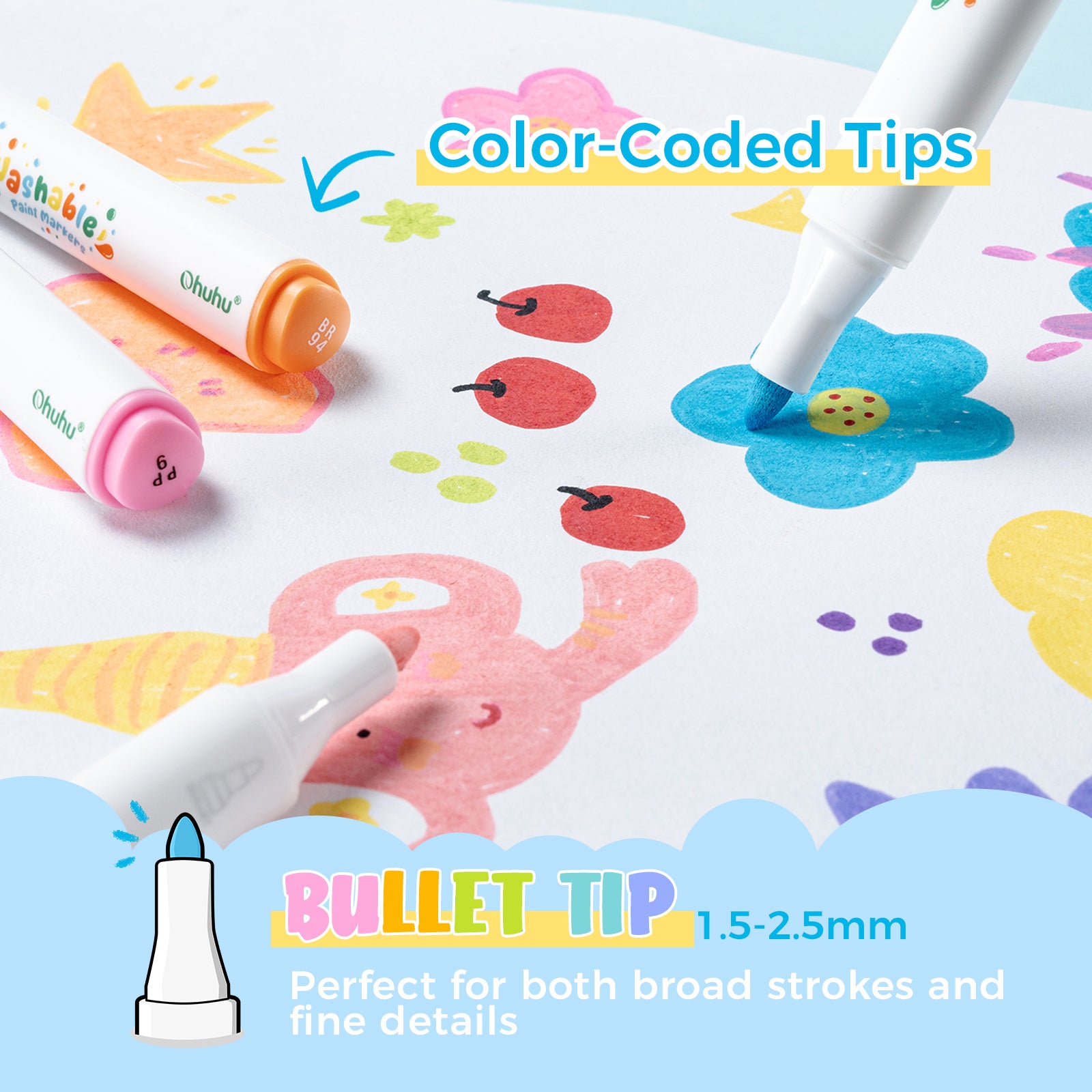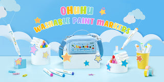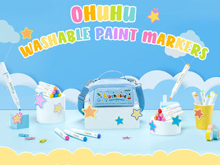 Ohuhu latest washable acrylic markers feature ASTM-D4236-certified water-based ink that easily washes off from skin, clothing, and most surfaces with just water. Perfect for parents and ideal for young artists aged 3-14 who enjoy creative—and messy—fun!