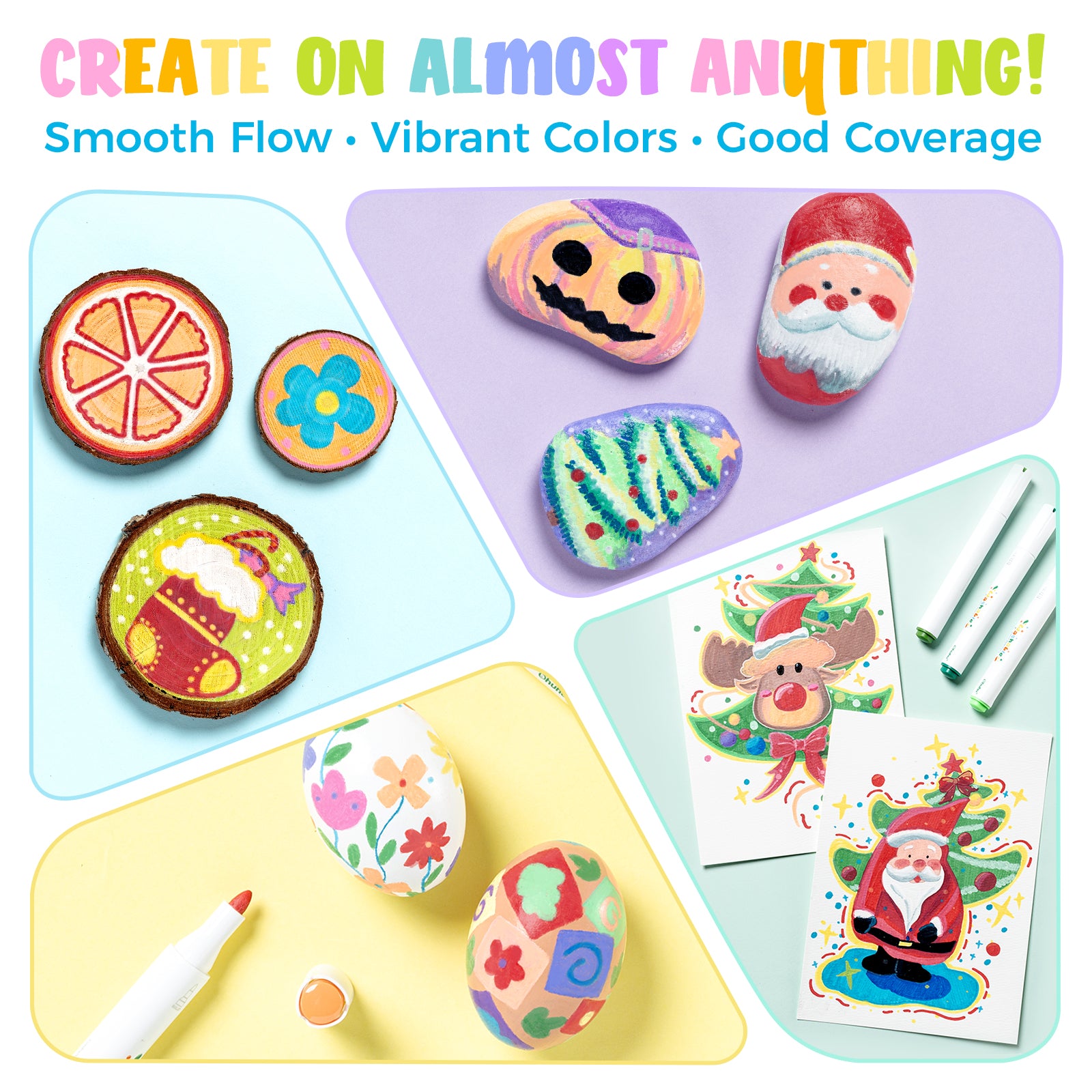 Our paint markers for wood work wonderfully on a variety of surfaces, including paper, rock, glass, wood, and canvas. Whether indoors or outdoors, these versatile markers unlock your child’s imagination and support creative expression everywhere.