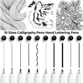Ohuhu Calligraphy Pens, Brush Chisel Fine 10 Size Tips