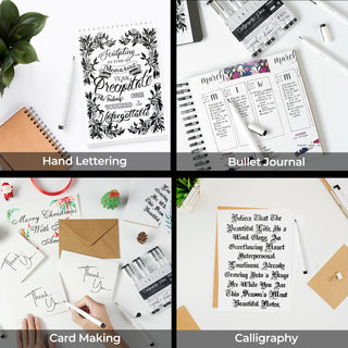This remarkable pen set features an assortment of soft and hard nibs with rich black calligraphy ink, freeing you to explore a multitude of lettering and drawing techniques. Thanks to the flexible tips, simply adjust the pressure to unlock a world of possibilities and effortlessly craft ultra-fine, fine, or medium strokes with finesse. Handwriting, cardmaking, drawing, calligraphy are all at ease.