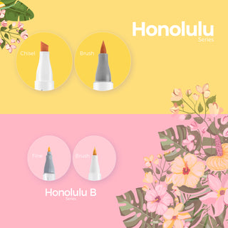 Honolulu B: Perfect for beginners, featuring a round ergonomic design with flexible brush and fine double tips.