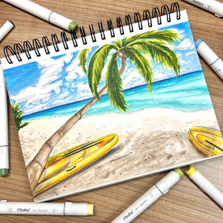 It's the perfect combo of durable and delicate. This 120LB (200GSM) heavyweight paper has a smooth, flat surface that prevents bleeding, smudging and feathering for clean artwork. It is a great choice sketchbook for most of DRY art medias. From alcohol markers to solvent markers, from colored pencils to charcoal, from pastels to inks, and more!
