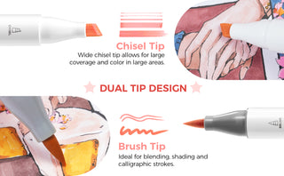 Widen your artistic horizons with the dual-tip marker design! Choose the brush tip for sweeping, calligraphic strokes or quickly color in large areas with the wide chisel tip. What's more, now Ohuhu replacement brush tips is available, so you can easily replace the worn-out tips to ensure consistent and precise lines whenever you create. The only limit is your imagination
