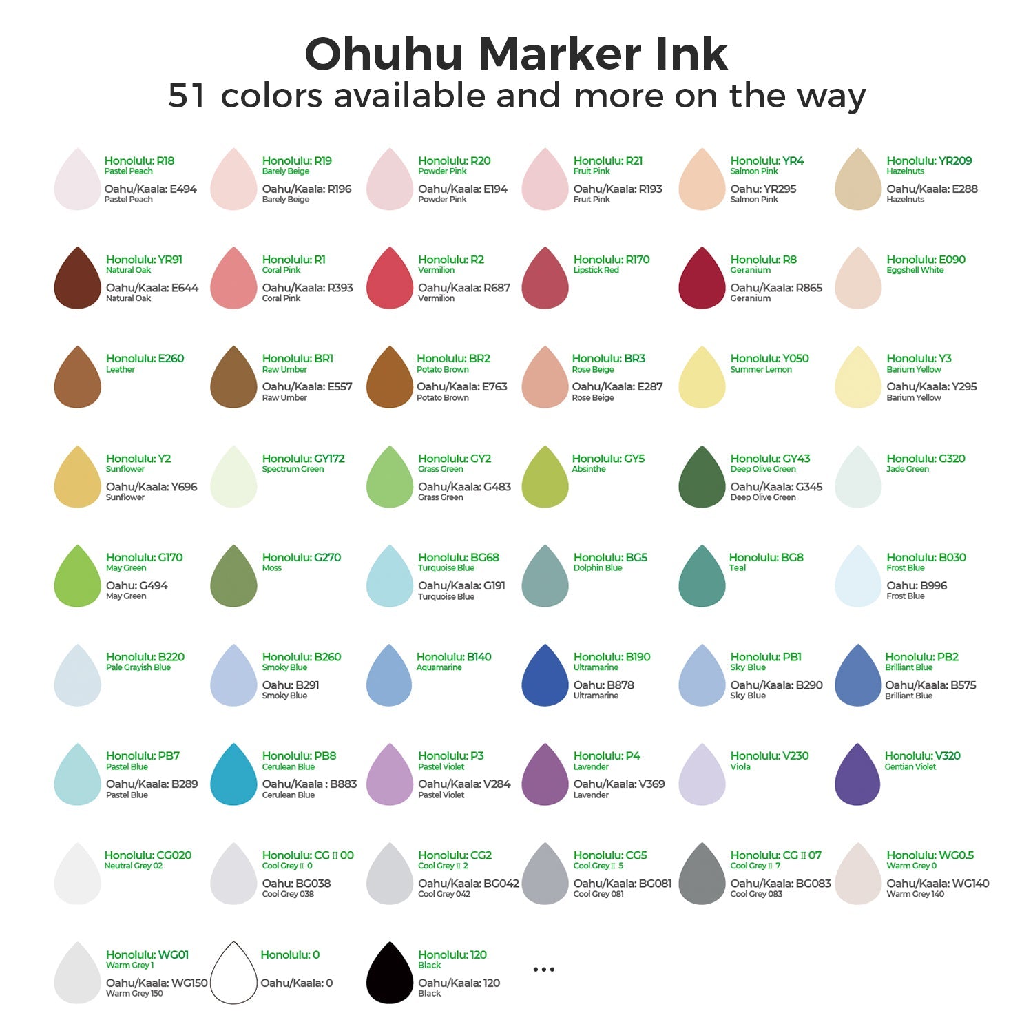 Refill Ink for Ohuhu Alcohol-Based Markers – Honolulu (B), Honolulu Plus, Honolulu S, Oahu, Kaala (B) & Molokai