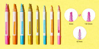 Each set includes 24 fine-tip (0.7mm) acrylic pens and 24 reversible markers with medium round (1.8-2mm) and chisel (4mm) tips. Simply pull the nib to switch sides—perfect for broad strokes with the round and chisel tips or detailed work with the fine tips.