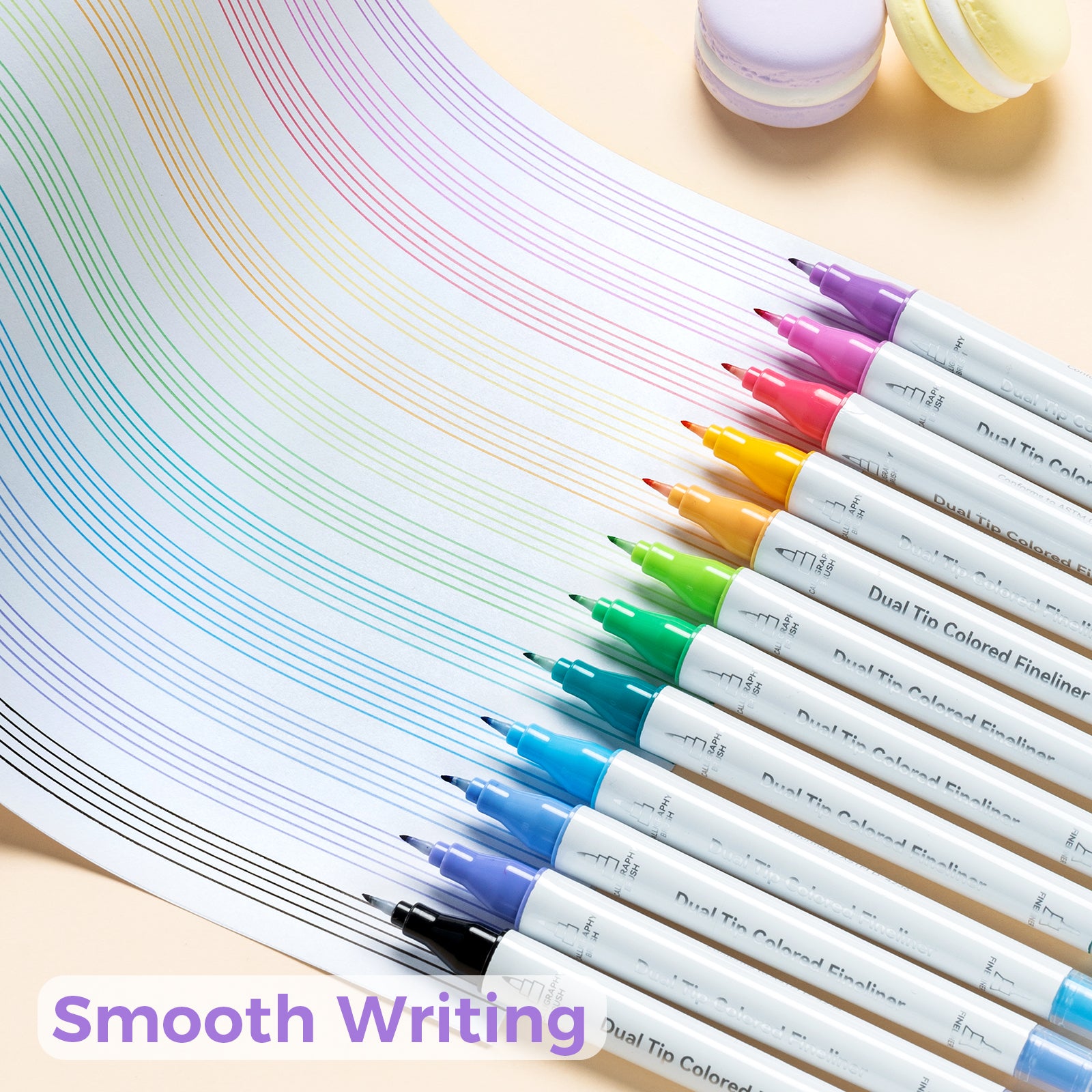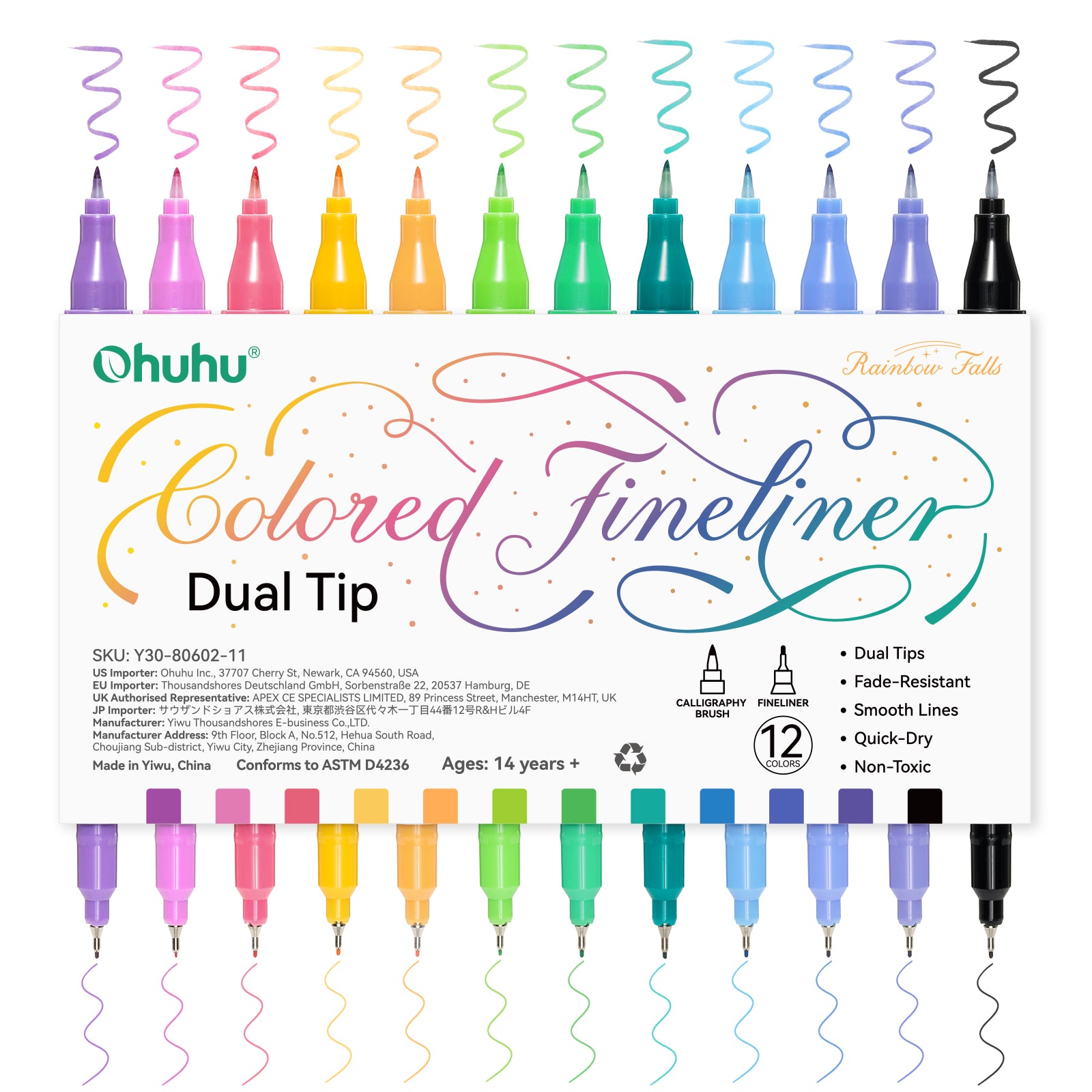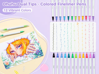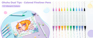 Ohuhu Colored Fineliner & Brush Pens, 12 Colors