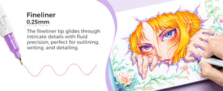 This versatile pen combines a fineliner tip and a brush tip in one. The fineliner delivers crisp, precise strokes for even the tiniest details in your artwork. The brush tip, on the other hand, lets you create dynamic strokes with varied widths, bringing depth and expression to your illustrations. It’s equally perfect for calligraphy and decorative lettering, making it an essential tool for both artists and writing enthusiasts.