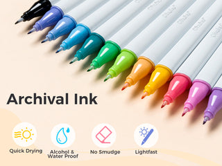Stay creative without limits! Ohuhu fineliner pens are filled with premium pigment-based ink, making them waterproof and alcohol-resistant. Blend them effortlessly with alcohol markers or layer them with watercolor paints—these fineliners are built to keep your artwork crisp, clean, and vibrant every time.