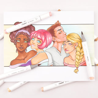 The Ohuhu 24 Skin Tone Marker Pen Set is designed for flesh, face, manga, portrait, illustration, drawing, sketching and other artistic creations. These markers dual tipped with fine tips for detailed lines while chisel-edged tips for wider strokes and easy coverage. The alcohol-based ink is non-toxic, acid-free, and dries in a flash. Besides, the colored caps for hue identification and preventing from volatilization are user-friendly. Also a carrying case keeps all your markers close at hand and convenient for portable use
