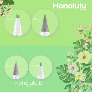 Honolulu B: Perfect for beginners, featuring a round ergonomic design with flexible brush and fine double tips.