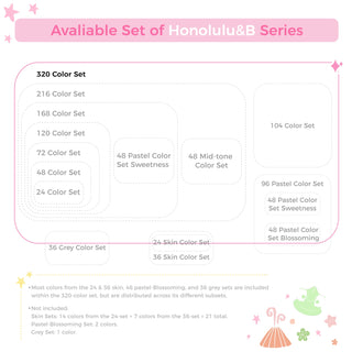 If you already own the 216 colors set of Ohuhu Honolulu Series, it is suggested to purchase the New 104 colors set to expand your collections to 320 colors.