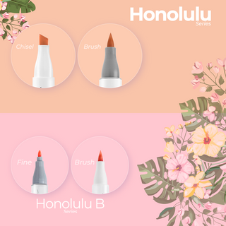 Honolulu B: Perfect for beginners, featuring a round ergonomic design with flexible brush and fine double tips.