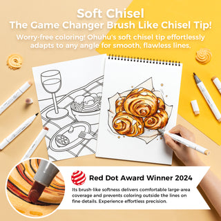 Get the best of both worlds with Ohuhu Dual Tip Alcohol Markers! The 1–6 mm brush tip lets you create fluid strokes and calligraphy, while the 1–4 mm soft chisel tip ensures accuracy for detail work. Plus, with replaceable brush nibs, you’ll always have markers that feel brand-new. Smooth lines, vivid colors—your creativity knows no bounds.