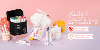 Ohuhu Honolulu S 60 Illustration Tone Colors Dual Soft Tips Alcohol Art Markers, Brush & Soft Chisel