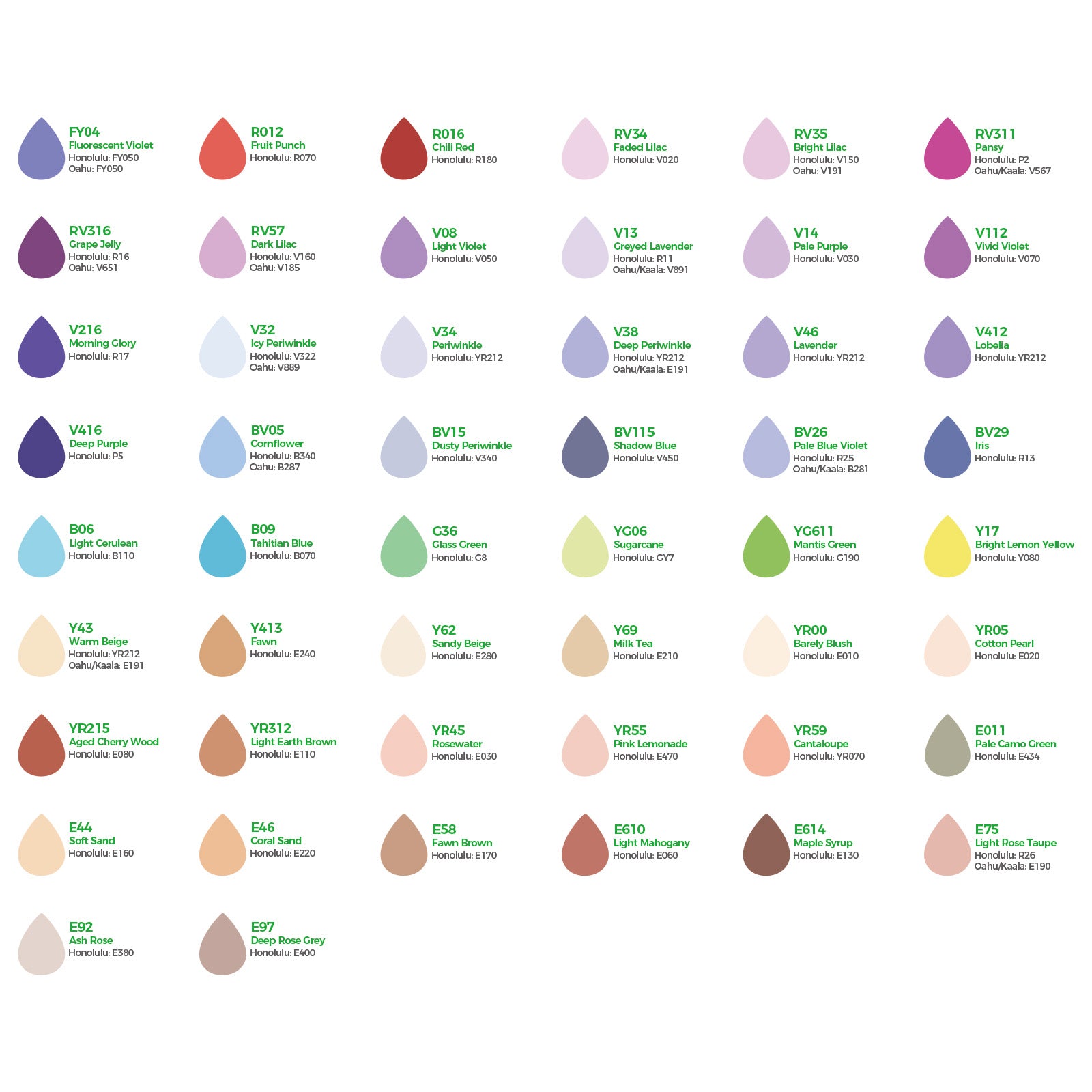 Refill Ink for Ohuhu Alcohol-Based Markers – Honolulu (B), Honolulu Plus, Honolulu S, Oahu, Kaala (B) & Molokai