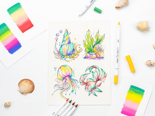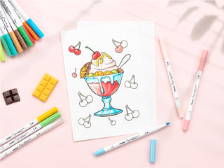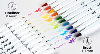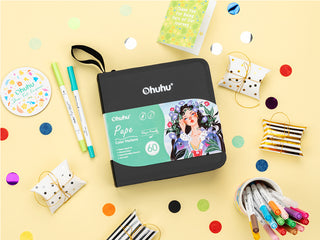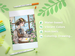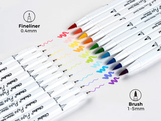 Ohuhu Pupe Paper-friendly (No Peeling) Brush and Fineliner Dual Tips 60 Colors Water-based Coloring Markers