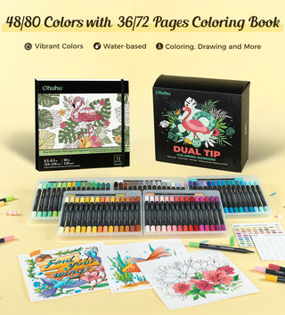Ohuhu Water Based Brush & Fine Tips Art Markers with Bleed-Proof Coloring Book