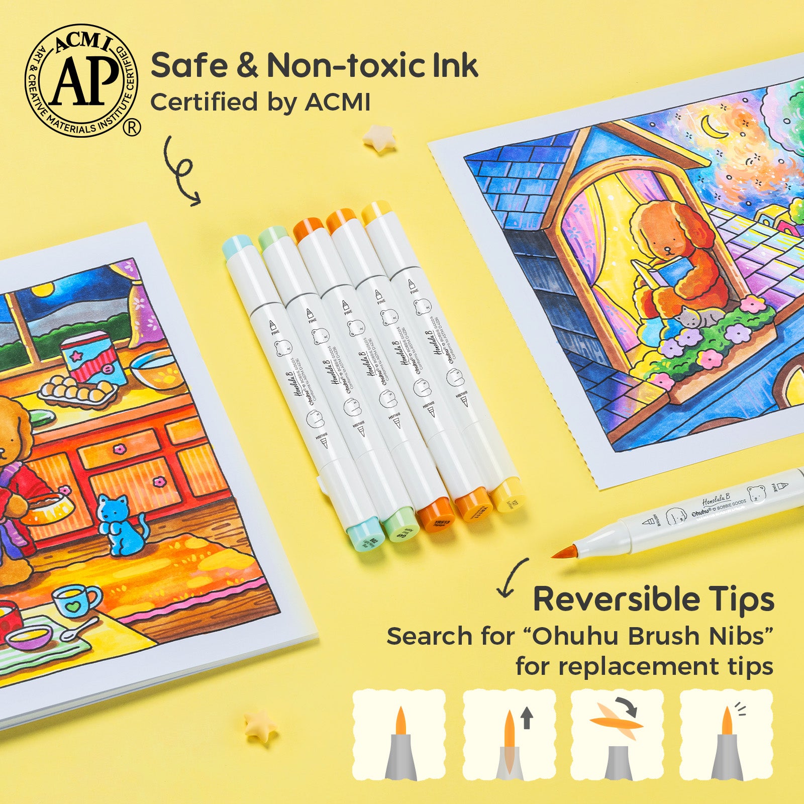 Ohuhu x Bobbie Goods Honolulu B 48 Colors Dual Tips Alcohol Art Markers, Brush & Fine