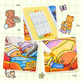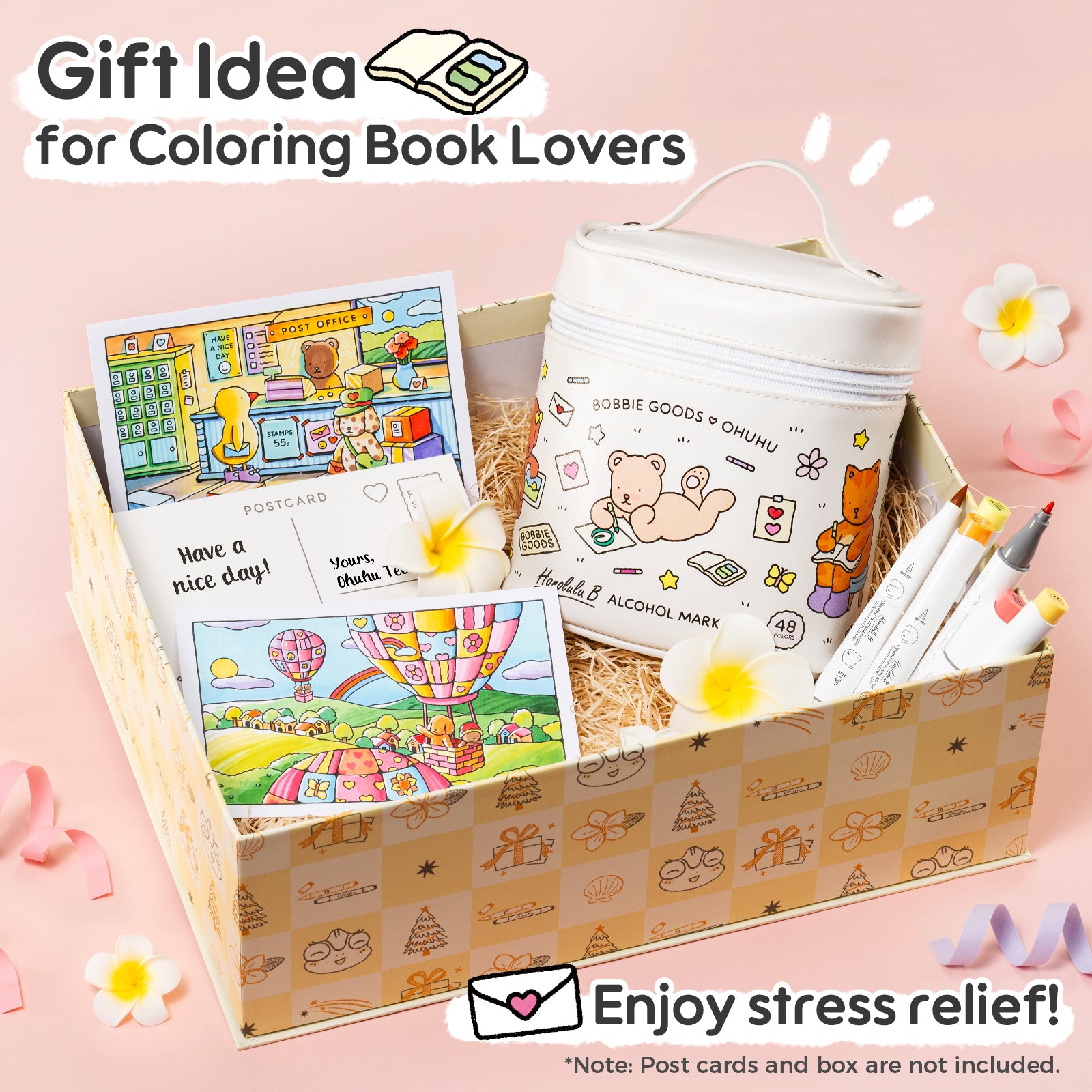 Grab this beautiful co-branded alcohol marker set for strictly limited quantities available. Secure yours during this availability window. Plus, enjoy exclusive features like unique pen barrel designs, plastic sheet in same size with Bobbie Goods coloring books, swatch cards and PU bag.