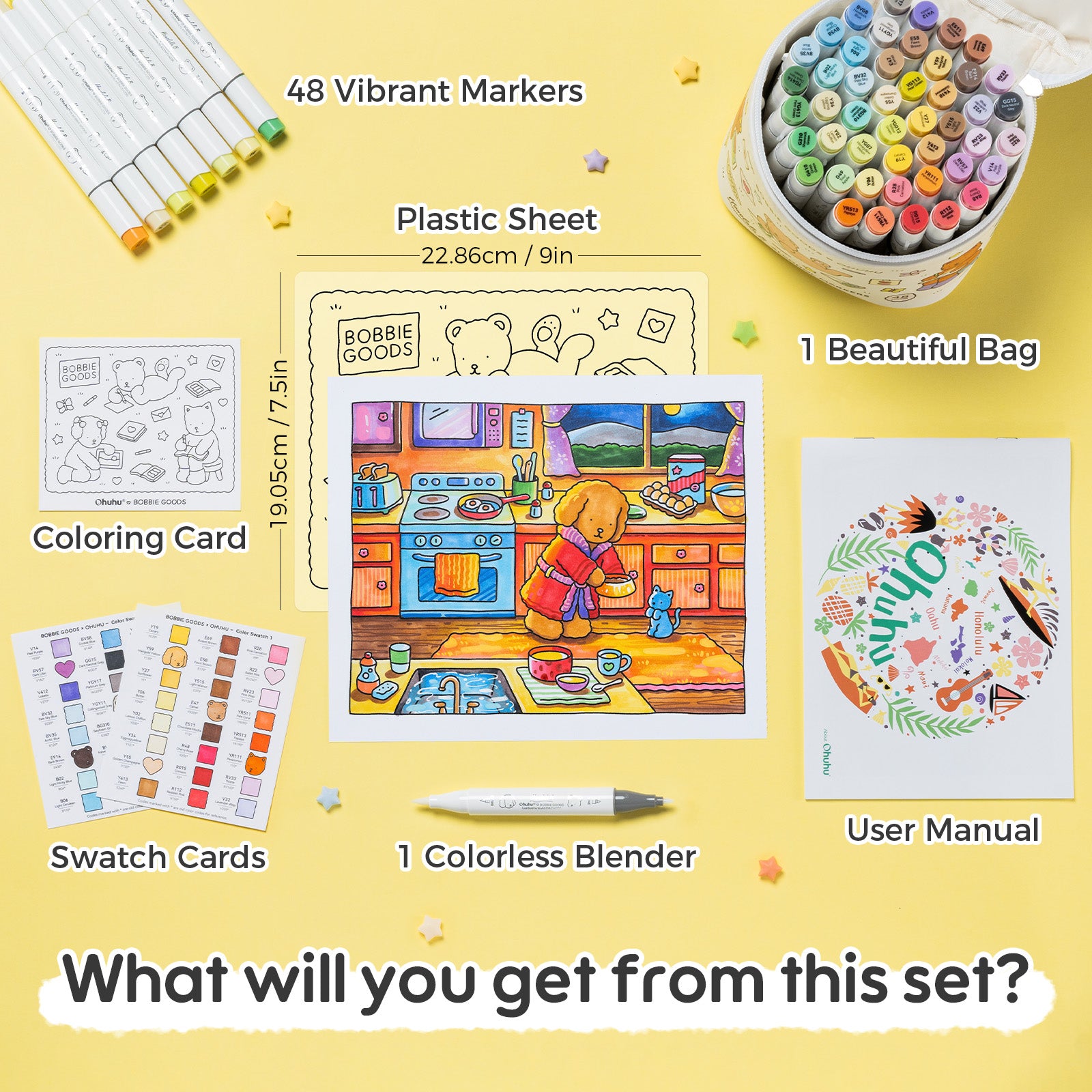 Color confidently! Developed jointly by Ohuhu & Bobbie Goods, these vibrant 48 colors are the perfect match for Bobbie Goods coloring books, postcards and more. Also, enjoy the same vibrancy across a wide range of popular coloring books.